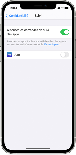 Par ailleurs, il est aussi possible de refuser directement toute demande de tracking à partir des réglages du téléphones, dans “Confidentialité”, puis “Suivi”. Il suffit ensuite de décocher la case “Autoriser les demandes de suivi des app”.